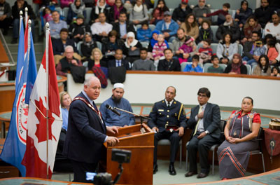 On February 1, Mayor Frank Scarpitti, Members of Council and members of the Islamic Society of Markham hosted a vigil for the victims of Sunday’s attack at the Centre culturel islamique de Québec in Ste-Foy, Québec City. Over 300 members of the community gathered at the Markham Civic Centre for the ceremony.